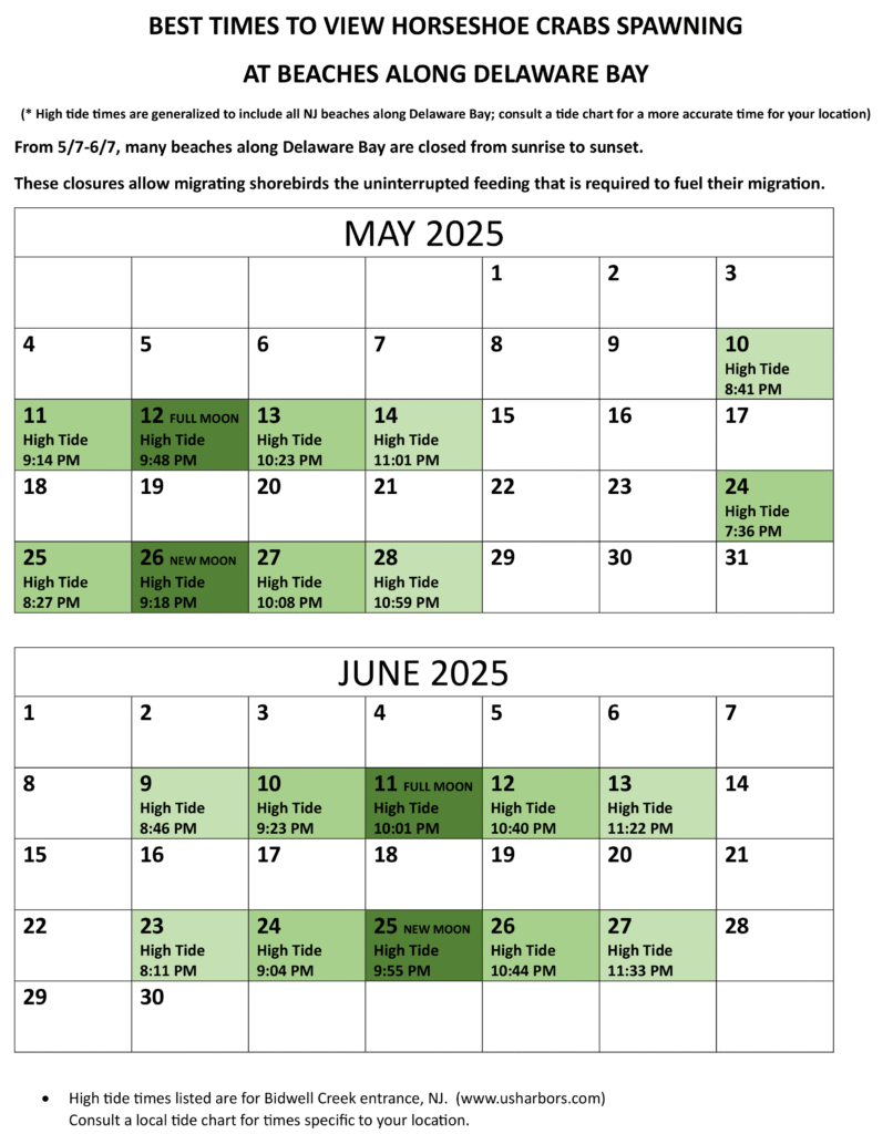 2025 Horseshoe Crab and Shorebird Events Calendar